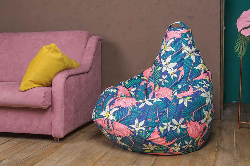 Яркое кресло-мешок из эксклюзивного мебельного велюра. Это кресло понравится тем, кто любит мягкие уютные ткани, стильные принты и неповторимость.